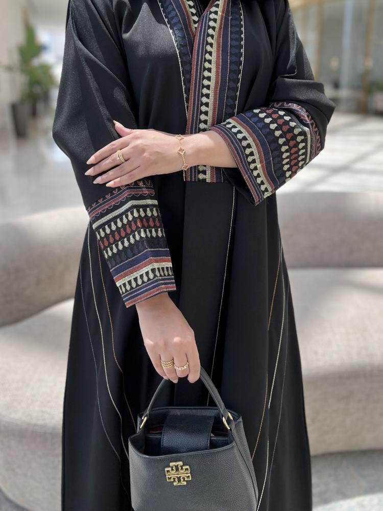 اختاري التفرّد مع عباية جوري، التصميم الذي يجمع بين روح التراث وجمال التفاصيل العصرية. تتميز العباية بتطريزات غنية وملونة على منطقة الصدر والأكمام، لتمنحك إطلالة تنطق بالفخامة والتميز.