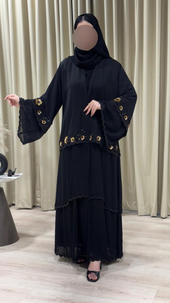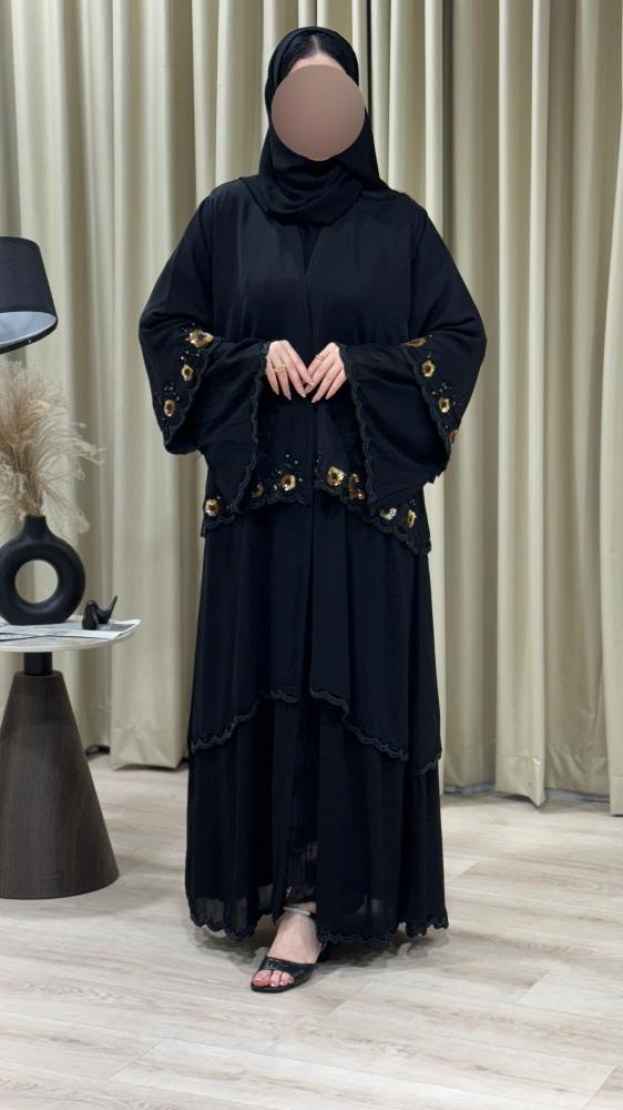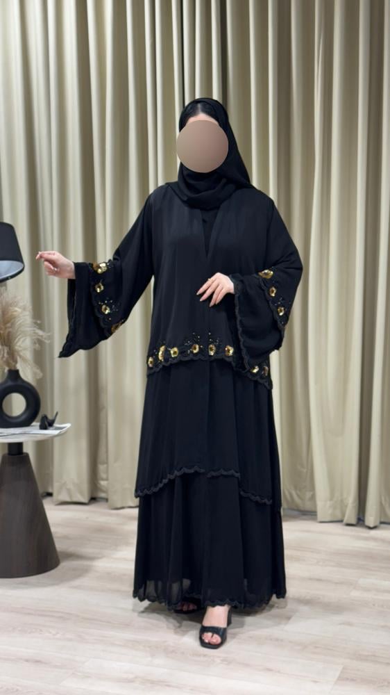 • تتميز العباية بتصميمها الذي يجمع بين التقاليد والعصرية، مع طبقات متداخلة تضيف عليها مظهراً فريداً وجذاباً يلفت الأنظار بأناقته.